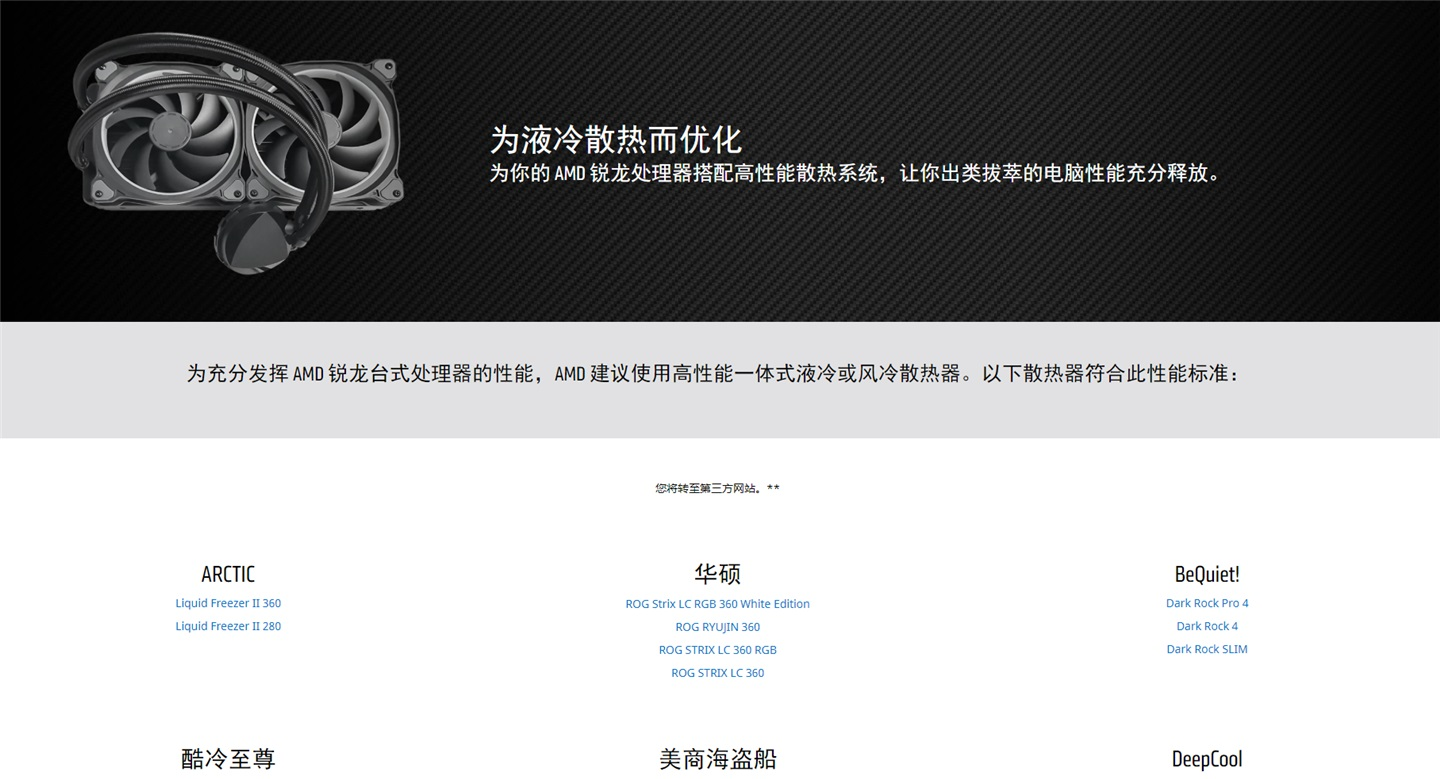 AMD Ryzen 9 5950X、AMD Ryzen 9 5900X、AMD Ryzen 7 5800X全部不再附赠原装散热器,这无疑会让大部分RGB玩家感到失望。但这也是无奈之举,想要马儿跑的快还要马儿不吃草必然行不通,AMD称这一代锐龙处理器为"液冷散热优化",即意味着推荐大家采用水冷进行散热,一定程度上表明锐龙5000系列有点"烫"。不过小牛则认为,这是AMD想要联合酷冷至尊推出AMD定制版本的CPU散热器,毕竟已经有了酷冷至尊代工的前车之鉴。